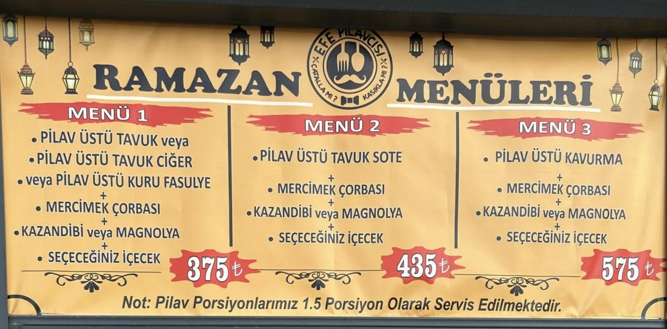 İftar sofranızın bereketi, bizim özel Ramazan menümüzle tamamlanıyor. Sevdiklerinizle paylaşacağınız en lezzetli anlar için buradayız. Avantajlı Ramazan menülerimizi kaçırmayın. Sofranız bereketli, iftarınız lezzetli olsun! Hayırlı Ramazanlar!